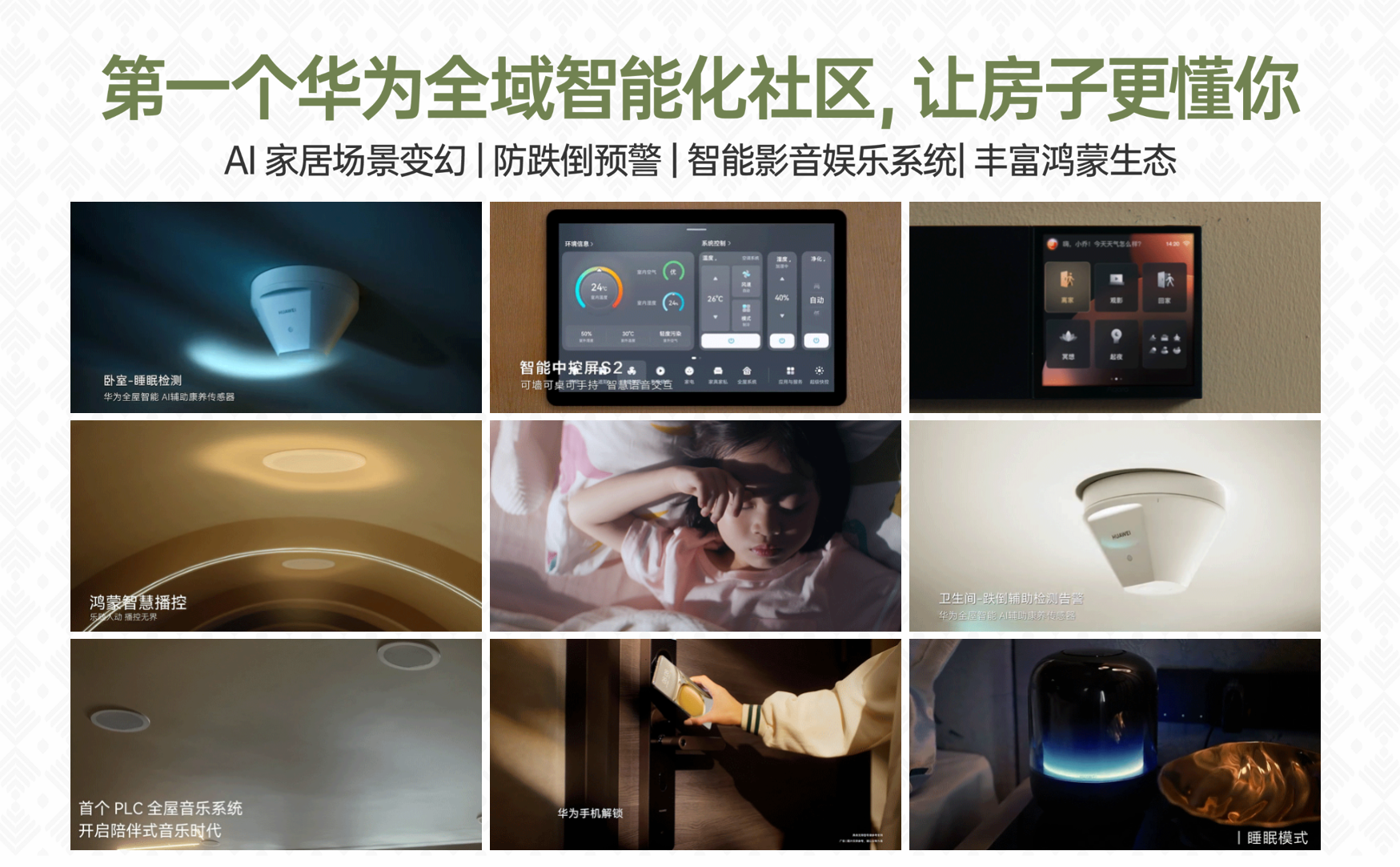 敏锐地捕捉到这两个用户痛点,华为鸿蒙智家覆盖照明、遮阳、冷暖新风、安防、影音娱乐、网络、家电、家具家私、用水、能耗等10大家庭场景,持续给用户带来沉浸式、个性化、可成长的全场景智慧体验。