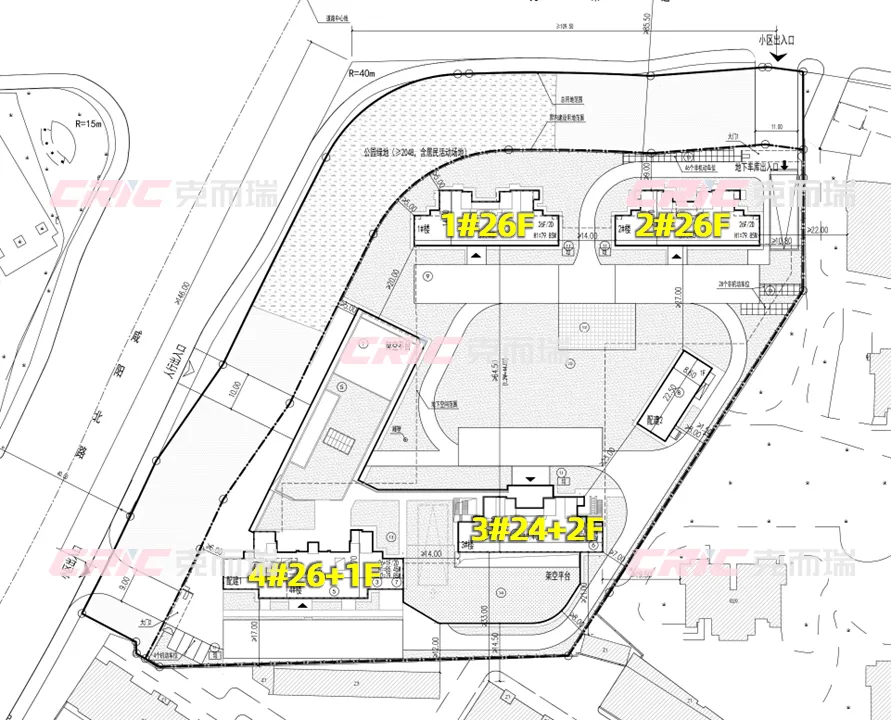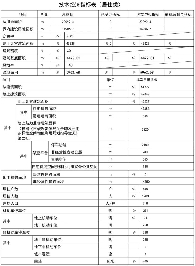 规划信息显示,该保障性住房项目共4栋住宅楼,均为26F到顶的高层产品,整个社区为架空层设计。申报的地上住宅总建筑面积42885㎡,户数458户,户均面积约94㎡。