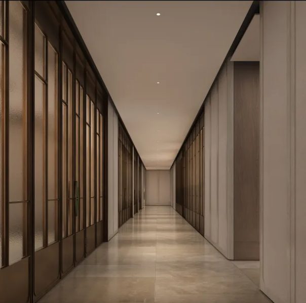 在细节上,做了不同程度的斜切面,同时增加圆弧元素,好像将宝格丽的扇子,镶嵌在立面中。此外,还创新引入色温的概念,让建筑立面颜色整体呈现出暖色调,这样一来,业主每日归家第一眼就能感受到家的温暖。