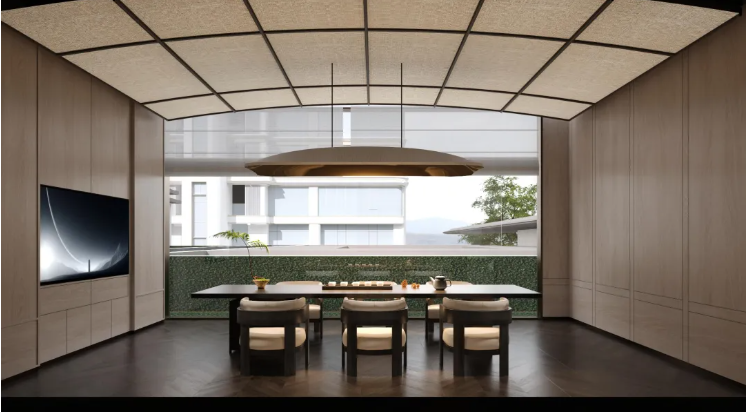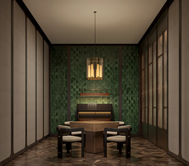 私宴厅,则通过高定的空间设计以及专业级餐饮配置,给予居者商务接待以及与宾客会面洽谈时足够多的排面和礼遇。