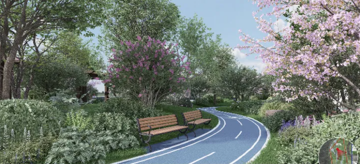 此外,意禾澄庐还于社区外部代建约4500平城市公园绿地,引入数百种名贵树种,营造四季分明,一步一景的城市公园景观。