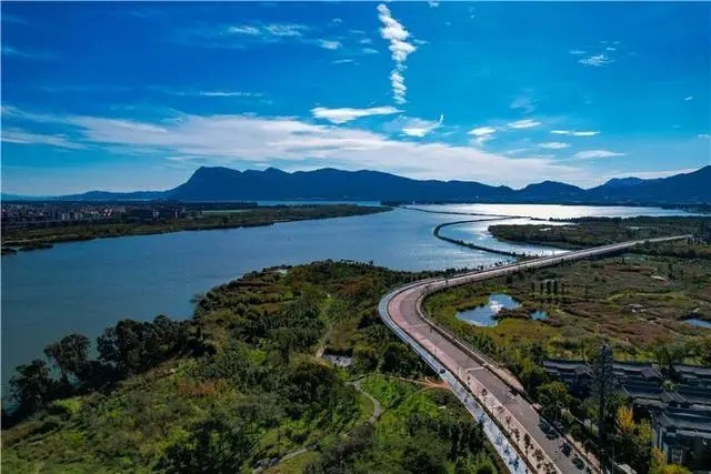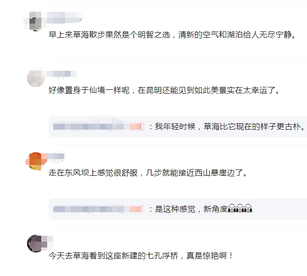 据了解,滇池绿道环草海段已经全部开放,约23公里长的绿道蜿蜒在波光粼粼的滇池草海沿岸,山水景廊、朝云桥、绿道浮桥等景观也一一呈现。