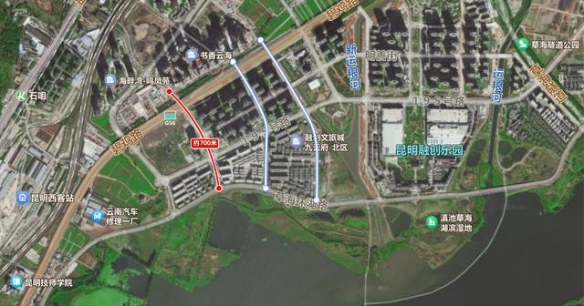 地图上非常直观,小渔路的建设和开通,提前为昆明西客站项目织密周边路网,不仅可以提升片区的交通能力,更能推动城市界面焕新,进一步提升区域价值。