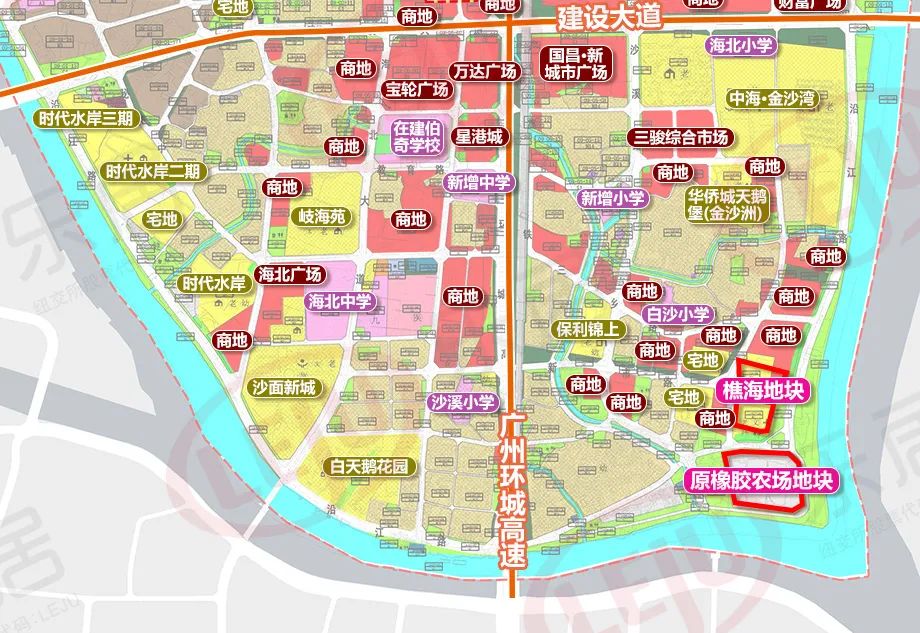 其中,黄岐海北沿江路段“樵海地块“、原橡胶农场地块”住宅项目位于大沥金沙洲板块,紧挨珠江水道,可一线望江。