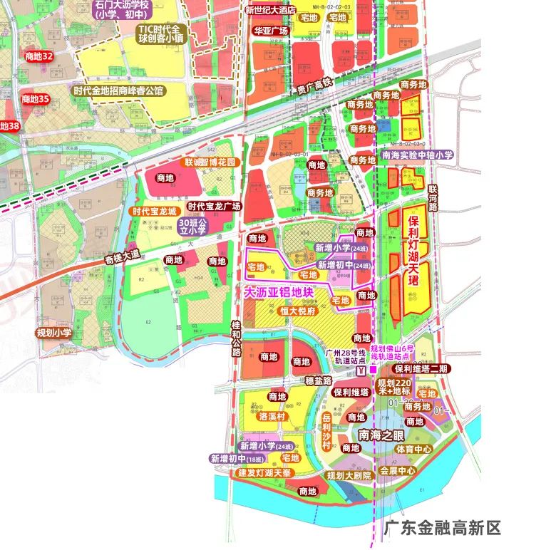 此外,还有亚铝二期地块,该地块曾于2022年挂牌,后又因故叫停,地块就位于南海之眼所在范围,周边已开发有恒大悦府、时代天韵、联诚智博花园等多个小区。