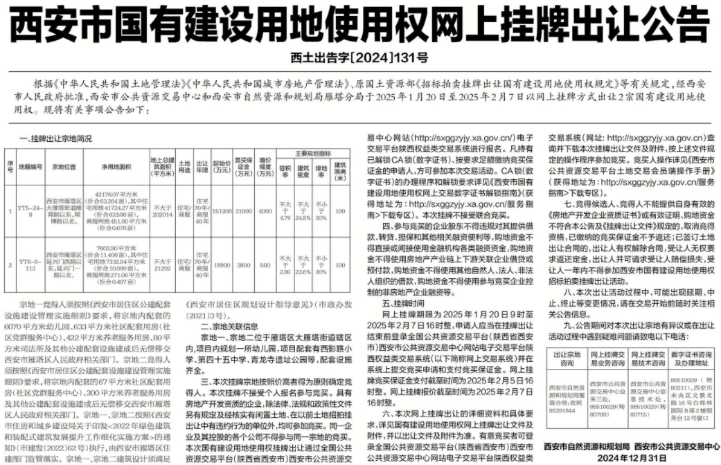 YT5-24-8地块位于西安市雁塔区大雁塔街道雁翔路以东,翔博路以北,净用地面积42176.07平方米(折合63.264亩),其中住宅用地41724.27平方米(折合62.586亩),商服用地451.80平方米(折合0.678亩)。