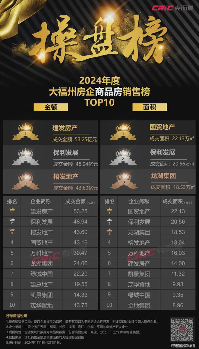 谁是“黑马”?2024年度福州房企销售排行榜出炉!