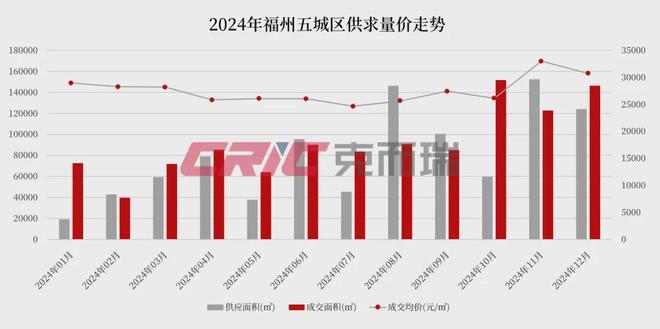 但基于2024年多个月份成交量较低,全年总成交量相比2023年下降约25%,总成交规模也相应缩水。成交均价方面,2024年福州五区成交均价相比2023年仅微降约1.97%。结合其实际来看,2024年打折促销的项目不在少数,降价风早已蔓延至中心和次中心板块,实际跌幅达10%左右。即便是此前炙手可热的豪宅盘,也免不了备案价打折出售。但基于豪宅盘成交量上涨,在部分高网签价的带动下,福州五城区网签价相比2023年仅呈“微降”态势。