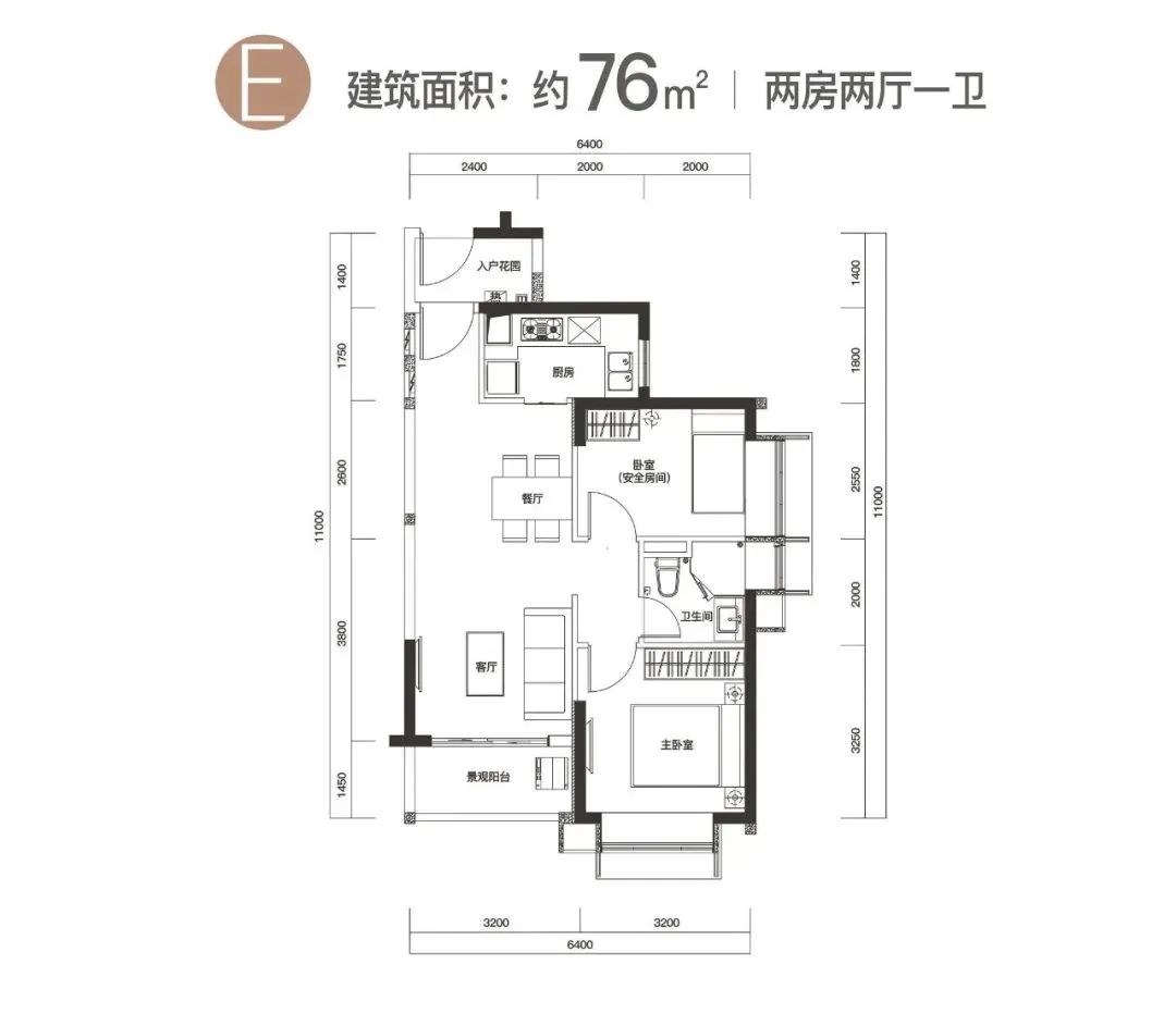 9-1、9-2座为2梯6户,楼高32层,户型涵盖55一房、76两房、80㎡两房。