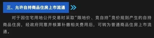 回顾2024年10月,佛山住建局等六部门印发“九条新政”中第三点就提到:允许自持商品住房上市流通,对于因住宅用地公开交易时采取“限地价、竞自持”竞价规则产生的自持商品住房,经政府同意并核算补缴相关费用后,可转为普通商品住房上市流通。