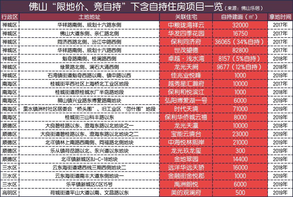 而据乐居梳理发现,这波因竞拍而产生的自持住宅项目也大多诞生于2017-2019年。据乐居不完全统计,从2017年-2019年间佛山涉及竞自持的住宅项目共计22个,总计配建自持面积超37.7万㎡。