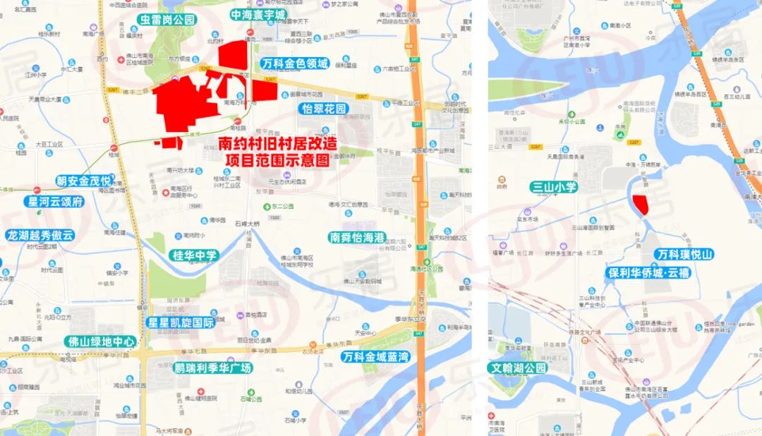 此外,南约村还有一块飞地位于南海三山新城,位于保利华侨城云禧北侧,临近广州界。.