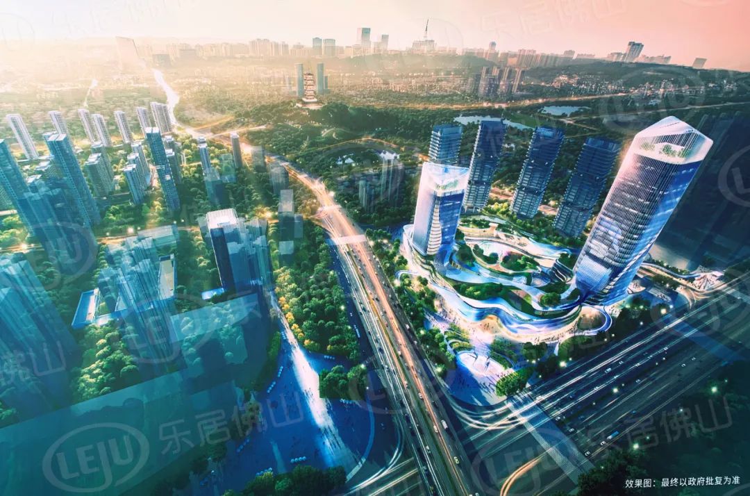 从效果图还可以看出,项目中心还规划了中轴公园,并与雷岗公园串联,与千灯湖中轴相呼应。