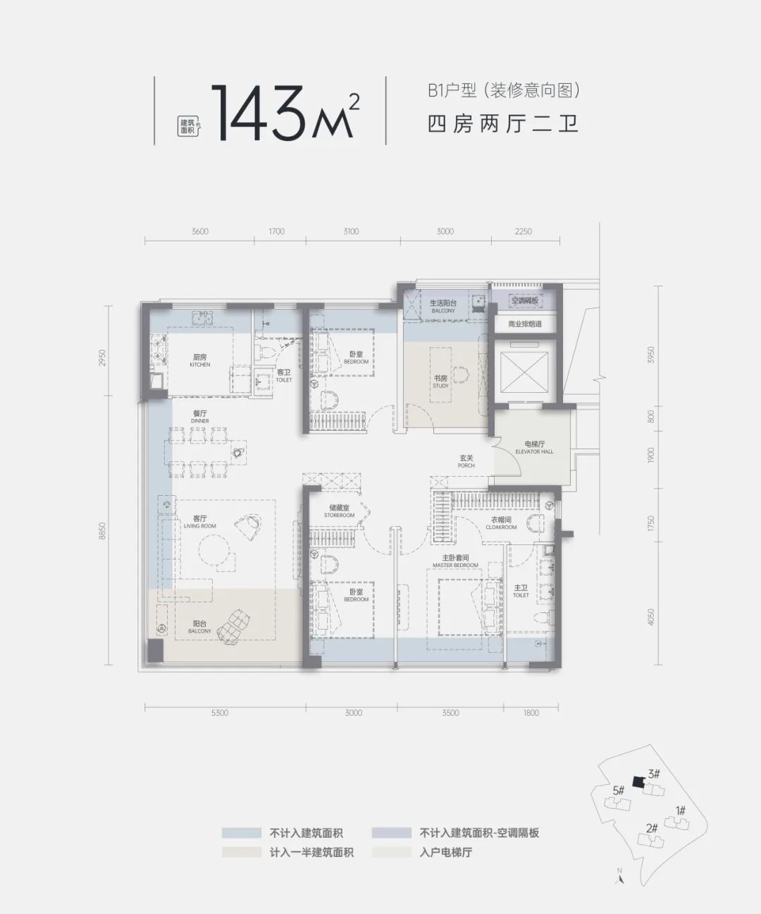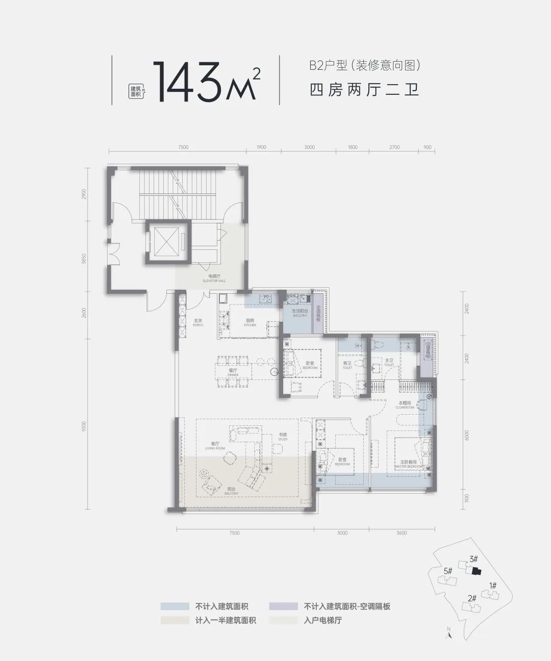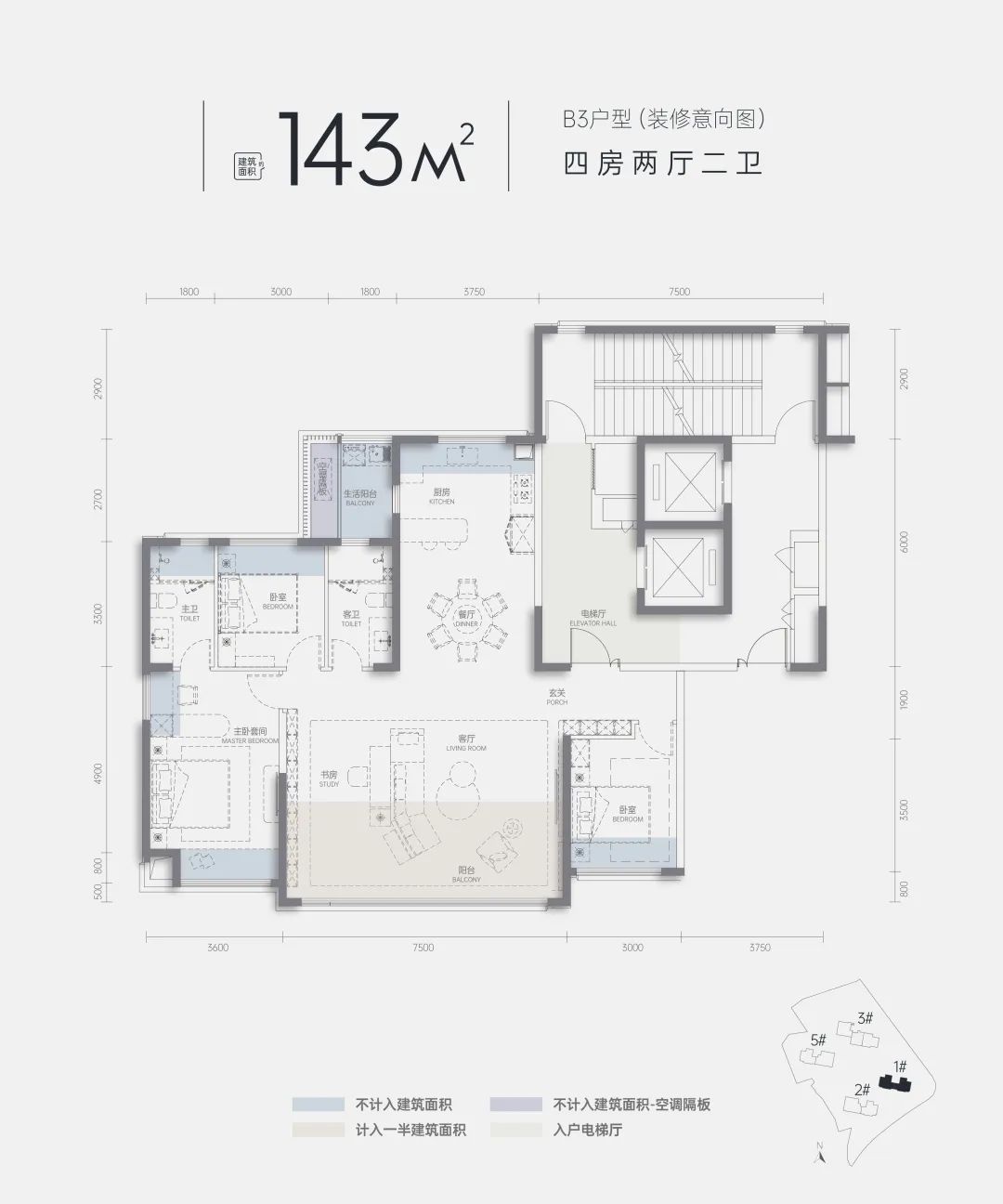 以建面约143㎡端厅户型为例,约105%的得房率让实得面积媲美旧规建面约180㎡,LDKB一体化设计打造出阔绰空间感,将生活的想象空间彻底打开,约14米超长景观面将山景、园景、城景全部收纳其中。