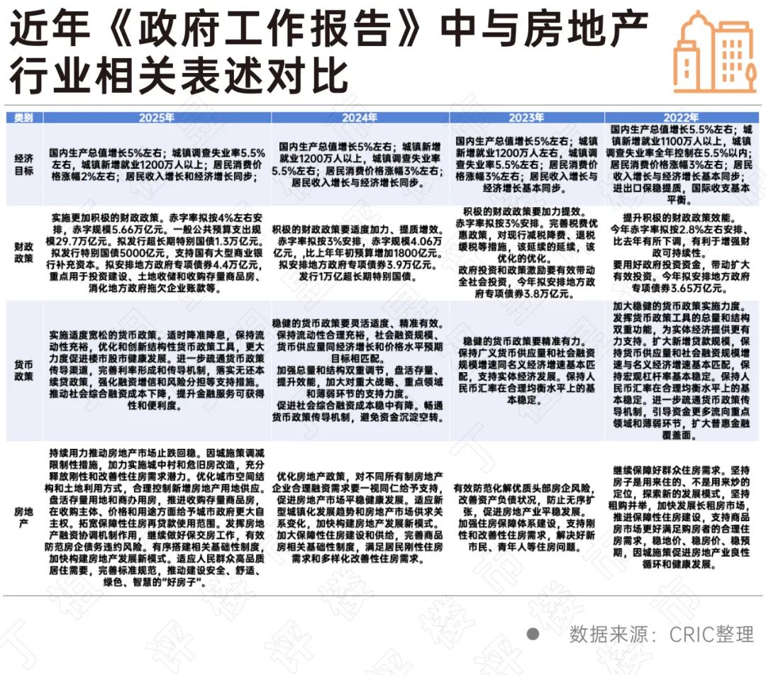相比往年,2025年政府工作报告的关键变化在于:强调安全与发展并重,坚持在发展中逐步化解风险,实现高质量发展和高水平安全的良性互动。政策已从“三稳”到“新模式”的制度性突破、从“救项目”转向“好房子”转变,未来具备“存量盘活能力”、“绿色科技实力”的开发企业将会有更大发展空间。