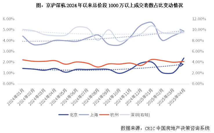 2025年4月以来,二手房成交热情略有回落,据CRIC监测数据,2025年4月30个重点城市二手住宅成交环比下降6%,同比增幅收窄至10%,而热点恒热的京沪深杭无一例外环比均出现稳步回调,加之外部中美贸易战关税影响之下,二手房成交结构有怎样的特征?二手房业主心态又有哪些变化呢?