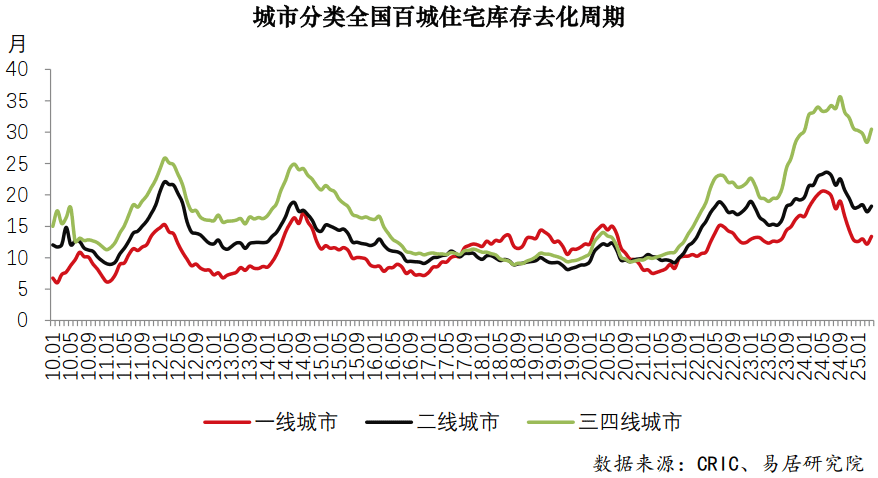 根据易居研究院提供的数据,2025年4月份监测的64个三四线城市存销比高达30.5个月。远超一线城市13.4个月和二线城市18.2个月的水平,更是超过了14个月的合理水平。