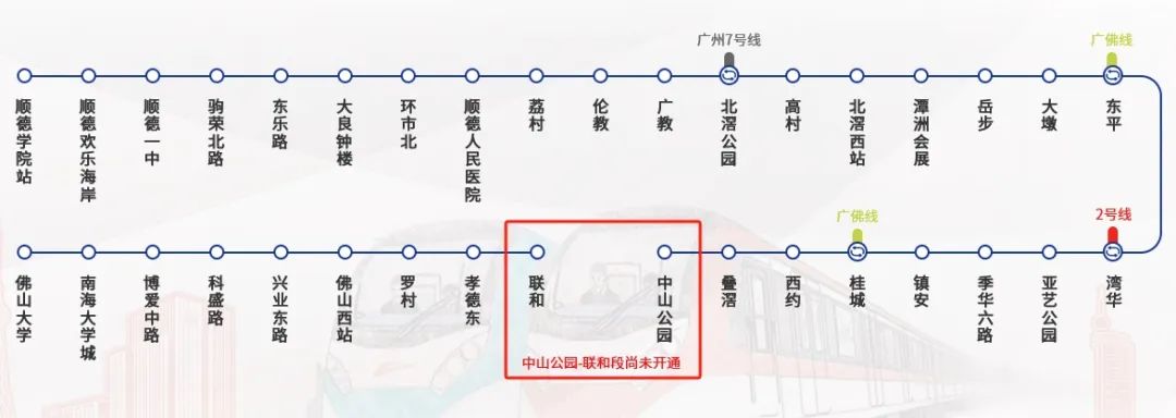 由于广湛高铁佛山站仍在建设中,地铁佛山站将暂时不停站通过,直至2026年广湛高铁佛山站正式启用后同步开通。