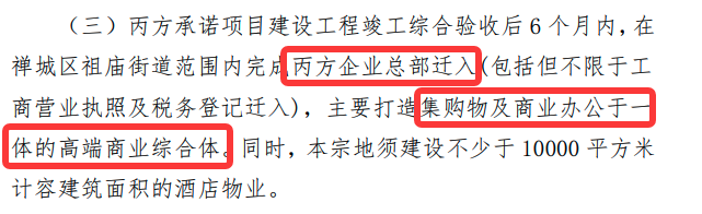 此次禅城一出手,便引其总部迁入,且要求10年内不迁出祖庙街道,同时在限定时间内纳税额不低于6000万元。