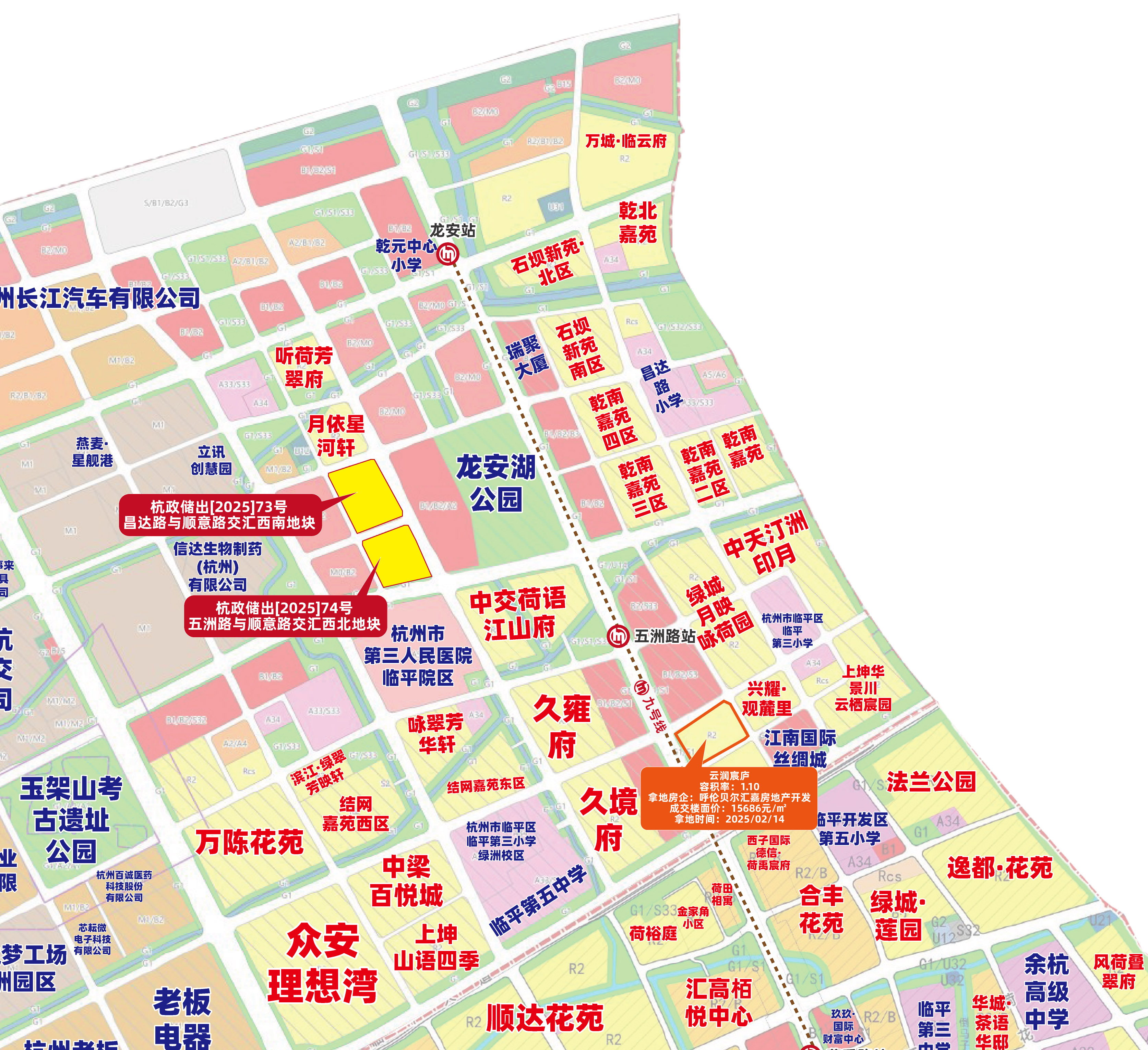 临平区东湖新城板块龙安湖公园西侧的2宗低密地,均被杰立地产&光大建设以底价竞得,楼面价均为10500元/㎡。