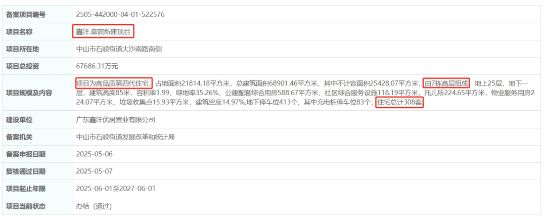 项目进展很快,拿地约1个月后备案,备案名为鑫洋·御宸,规划建7栋高层住宅,容积率1.99,住宅总计308套【回顾】。