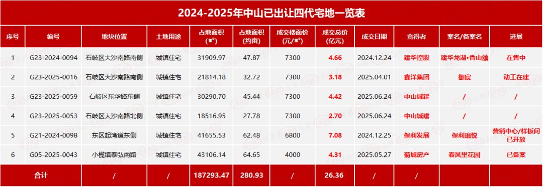 中山6月24日,随着石岐区2宗宅地成功出让,中山2025年上半年土拍暂告一段落。