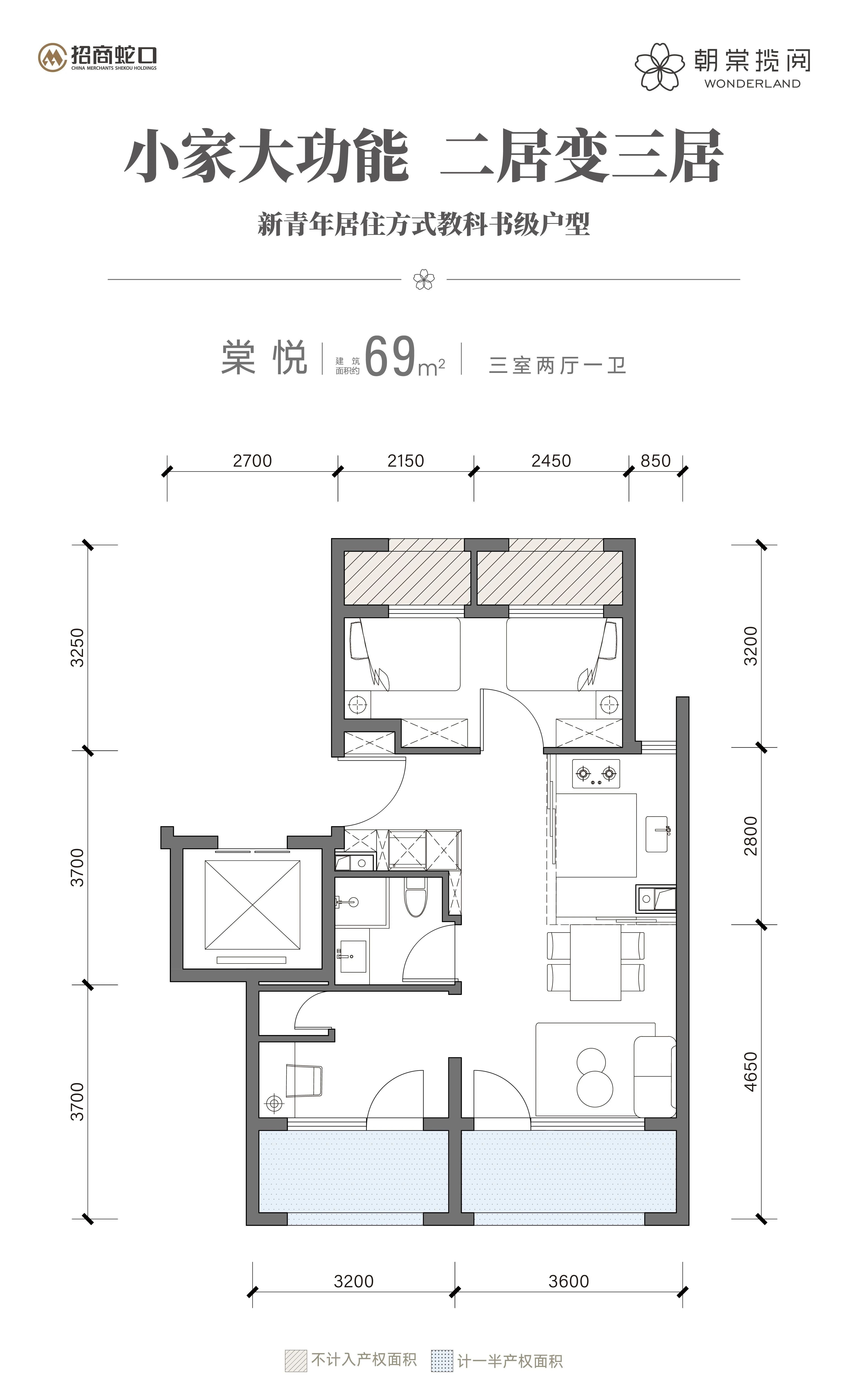 具体来看本次开放的69㎡三室两厅一卫王炸户型: