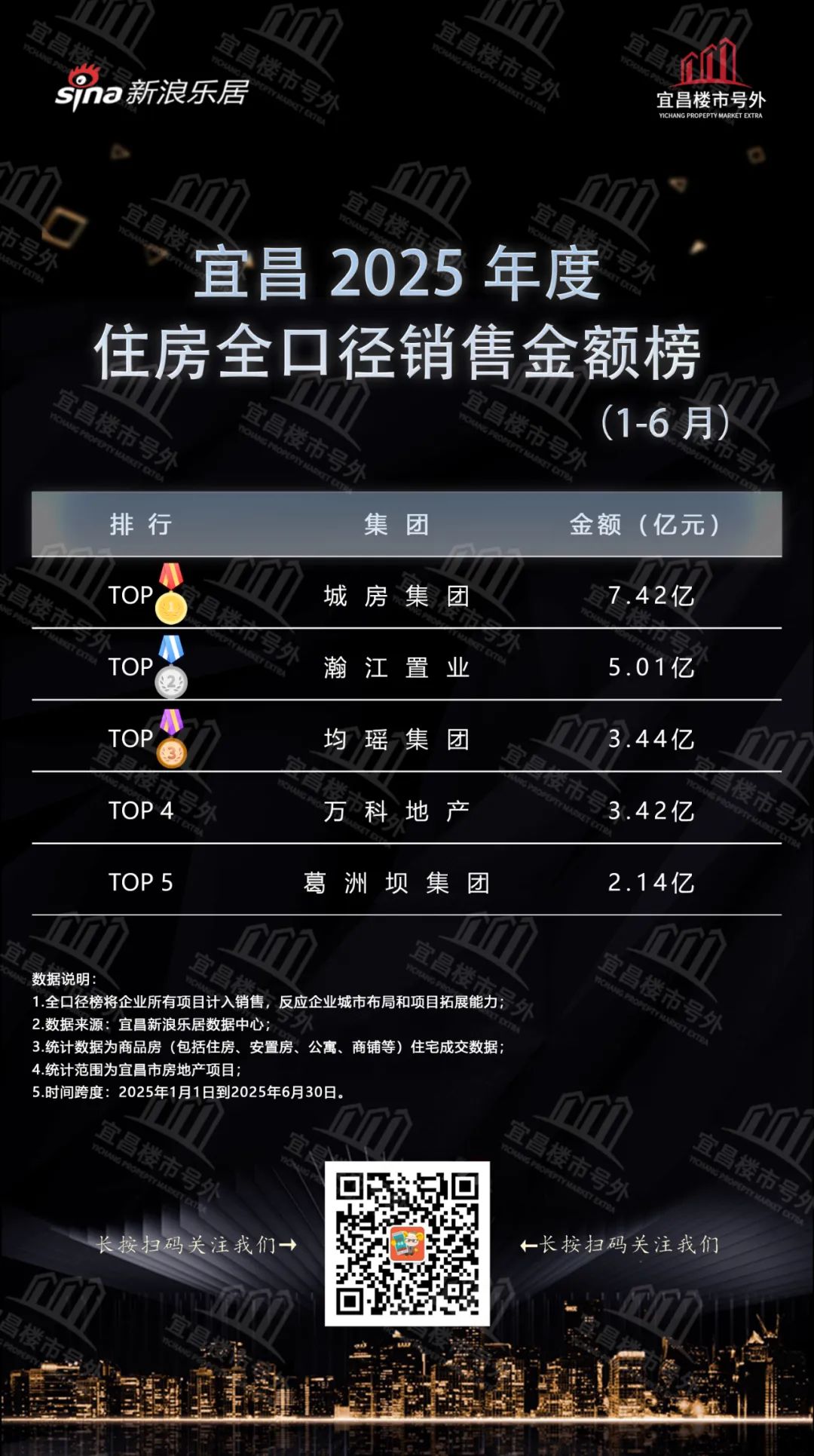 在宜昌商品房全口径销售金额方面TOP5的分别为城房集团、瀚江置业、均瑶集团、万科地产、葛洲坝集团。