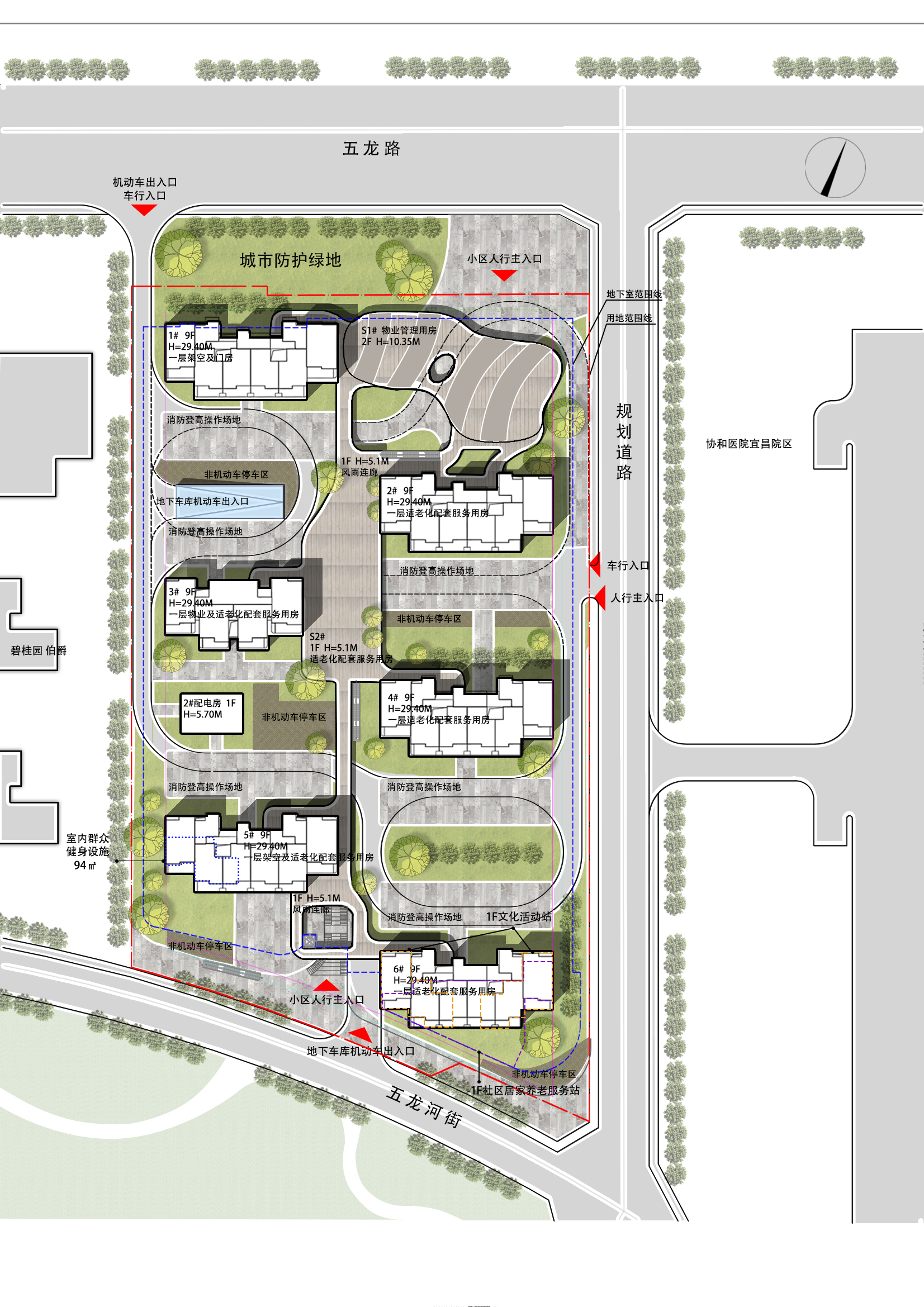 主要设置6栋9层住宅。