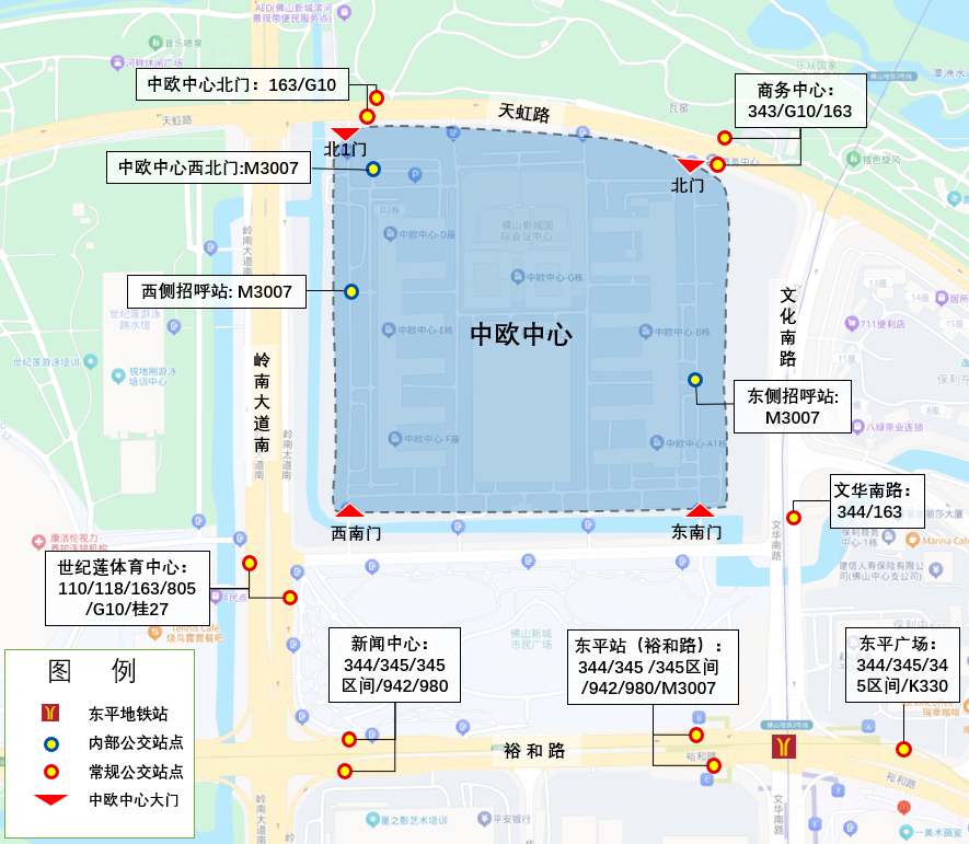 乘坐广佛线或佛山地铁3号线至“东平”地铁站B出口,往西北方向步行10分钟左右可到达中欧中心E栋1楼。