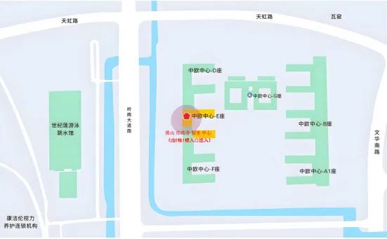 佛山市顺德区乐从镇岭南大道2号佛山新城中欧中心E栋1、2楼和D栋2楼(由E栋1楼政务服务大厅正门进入)。