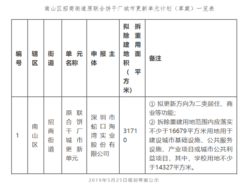 于2019年7月列入《2019年深圳市南山区城市更新单元计划第二批计划》,总规划建筑面积约131万平方米,原计划建设超高层住宅、写字楼及学校等配套。