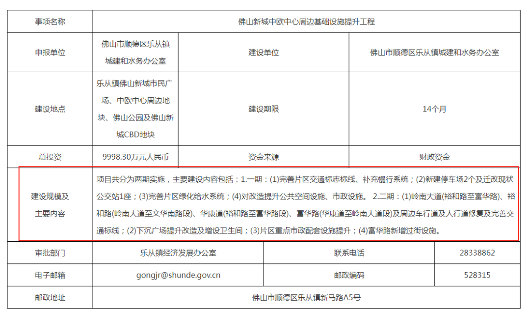 02.斥资9500万进行基础设施提升近日,广东省公共资源交易平台发布了一份“佛山新城中欧中心周边基础设施提升工程设计”的招标。公告显示,项目估算总额约9500万元,道路改造工程改造范围包含了岭南大道南、天虹路、文华南路、裕和路、华康道、富华路、天虹路及中欧中心南侧道路。