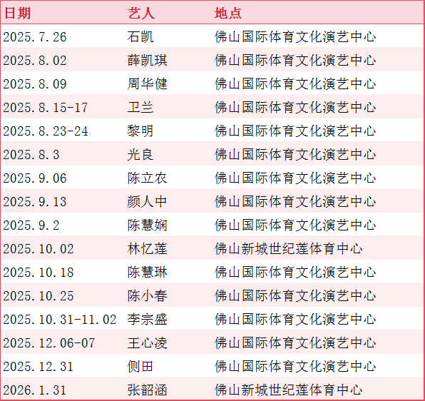 ·佛山新城演唱会已排到2026年,大咖云集,人气旺爆!