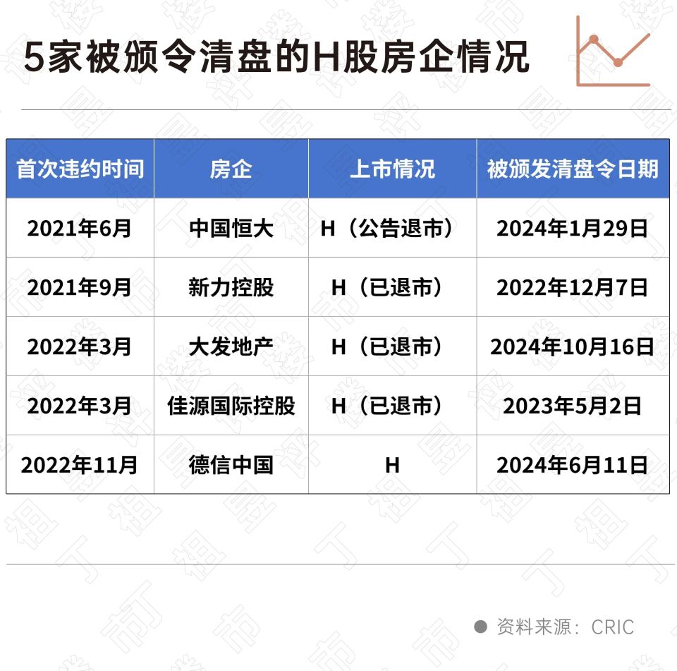 H股方面,49家H股上市的内房企中有27家收到过清盘呈请,其中德信、新力、大发、佳源国际和中国恒大5家企业已经被颁令清盘,12家房企的清盘呈请被香港高等法院颁令撤回。H股房企基本都在积极进行债务重组自救,尽量避免被清盘的情况发生。