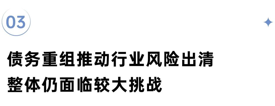 但整体行业面仍然面临着一系列的挑战,只有大多数出险房企债务重组成功才真正意味着行业风险彻底出清。