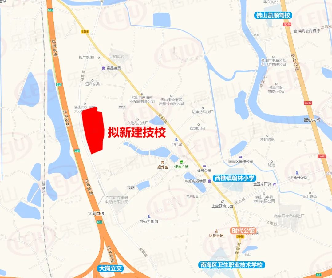 从地图上看,该规划技校北至佛山市南海迈洋家具塑料厂,南至塘西坊,西至樵丹新干线、东至文昌圩路旁绿地,除了该校外,周边还建有南海区卫生职业技术学校。