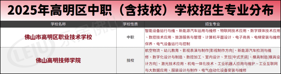 此外,高明则只有两所中职(技工)类学校,均位于荷城。