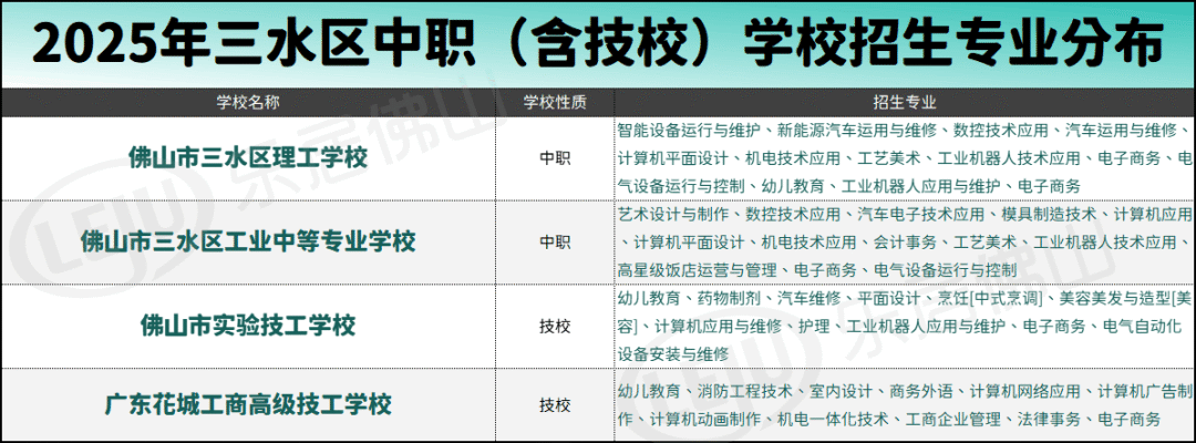三水方面,中职(技工)类学校则一共有4所。