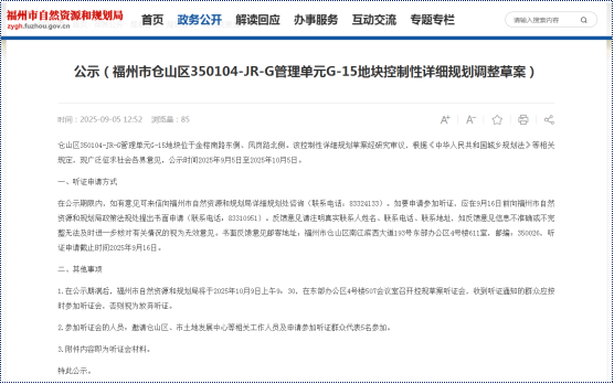 在公示期限内,如有意见可来信向福州市自然资源和规划局详细规划处咨询;如要申请参加听证,应在9月16日前向福州市自然资源和规划局政策法规处提出书面申请。