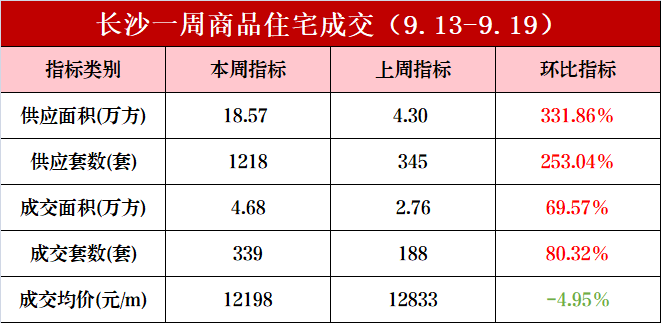 市场成交|9月第三周长沙新房成交339套 供应量激增253% 金九银十待爆发