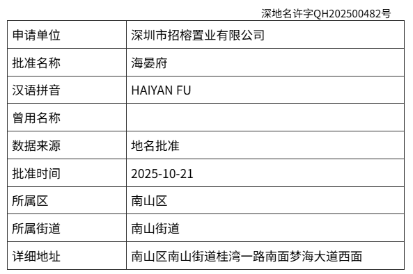 近日,深圳市规划和自然资源局公告招商地产前海宅地项目案名——海晏府。