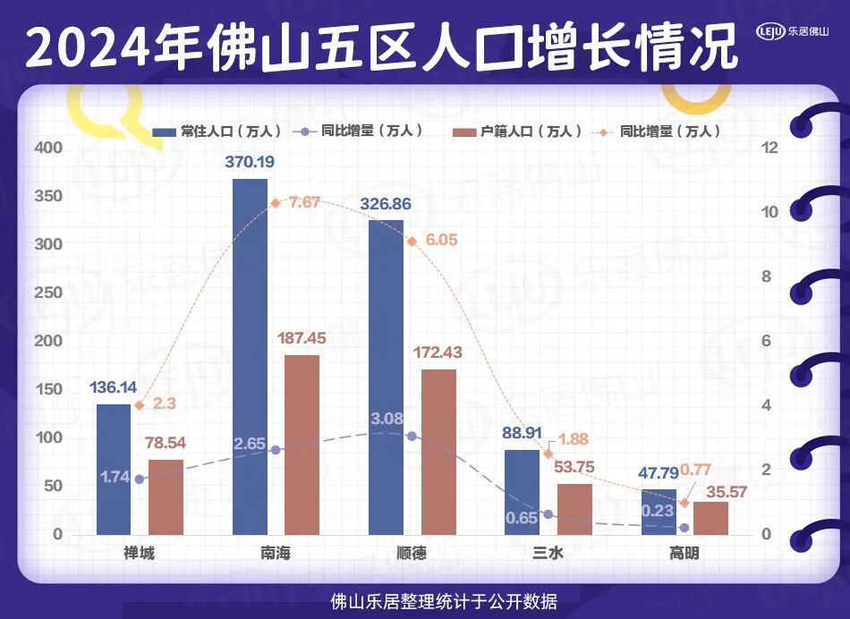 其中贡献最大的正是南海区,根据此前公报资料显示,2024年末南海区户籍人口不仅以187.45万人的总量遥遥领先,其增量7.67万人在五区之中也是最高的。