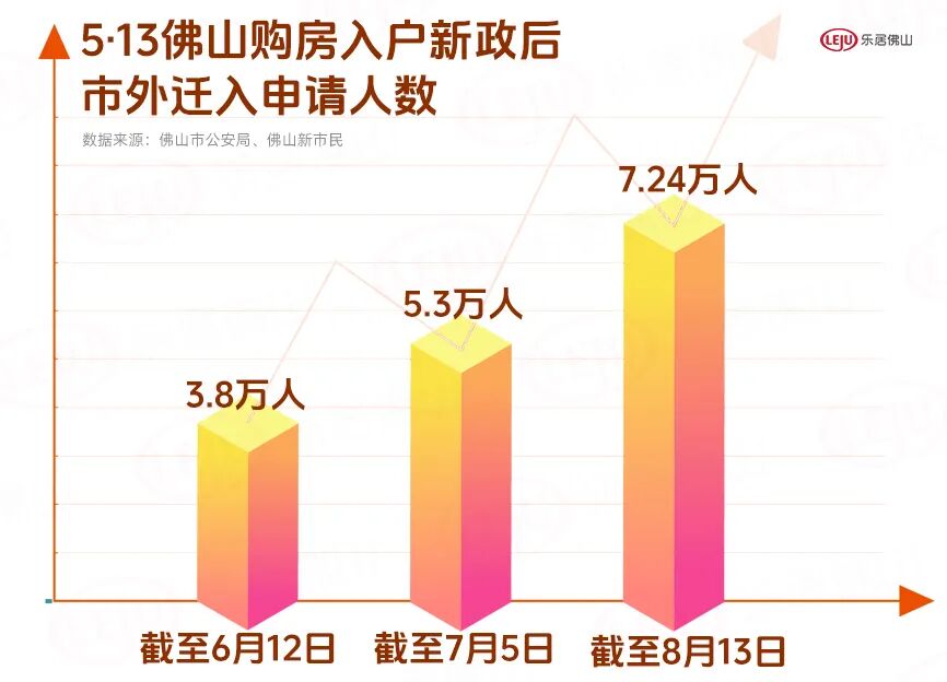 值得一提的是,由于2024年5月,佛山重启购房入户,短短三个月时间,市外迁入申请人数高达7.24万人,比2023年同期增长68%。