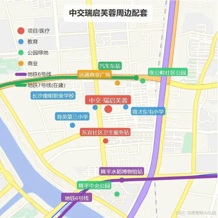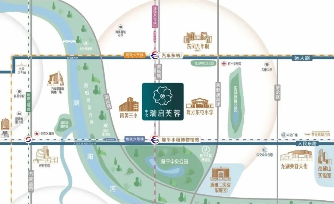 交通是中交瑞启芙蓉的一大优势。项目距地铁6号线隆平水稻博物馆站约700米,距在建7号线汽车东站约300米,未来还将接入规划中的8号线,实现“三轨交汇”。