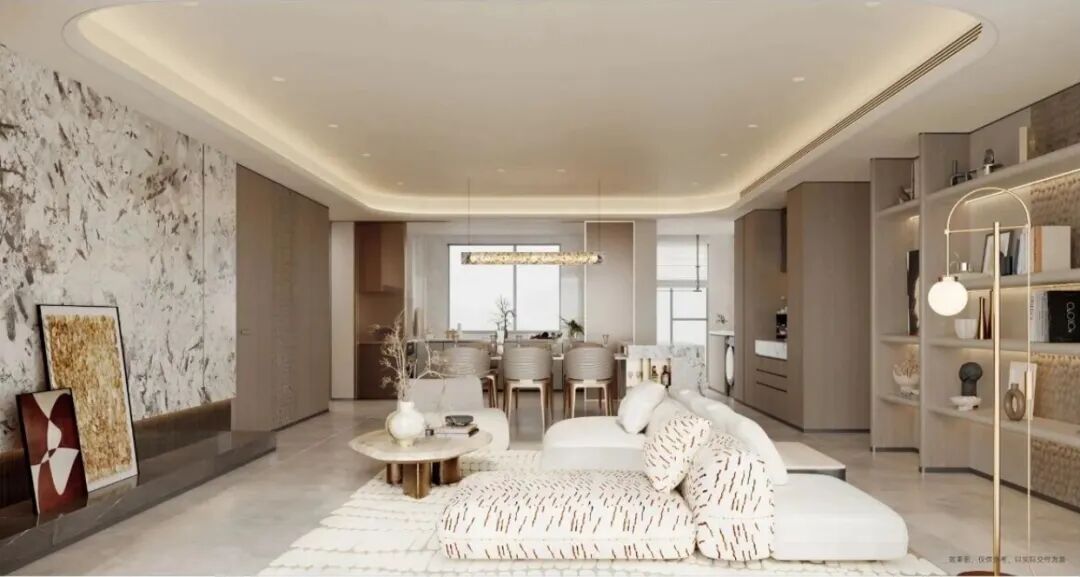 客厅、餐厅、厨房、阳台一体化设计,形成62.4㎡的LDKB巨厅,搭配约6米采光面,空间通透,家庭聚会、亲子互动体验良好。