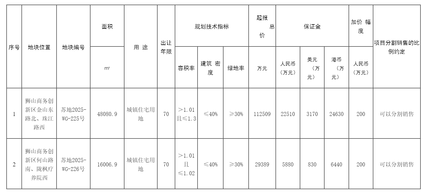 乐居买房 今天,苏地网挂(2025)25号公告,狮山挂牌出让两宗住宅用地,位置核心且超低密!起拍楼面价均为18000元/㎡。11月28日开拍!