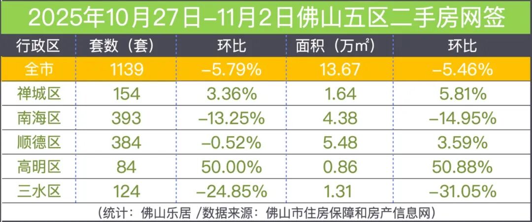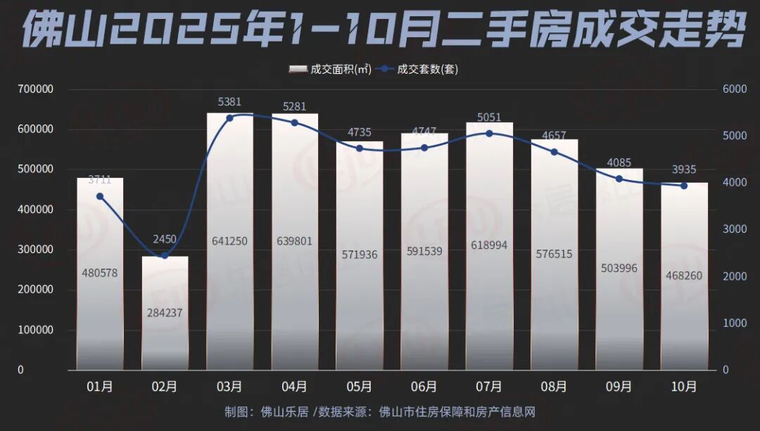 不过单看二手市场,却略有下滑。数据显示,佛山10月总计网签3935套,网签面积约46.83万㎡,环跌7.08%,为近几个月最低。
