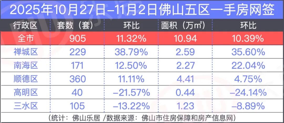 连续三周2K+、10月环涨4成、一手近3个月新高……佛山楼市热度真的又回来了?!连续三周超2K套!一手创近3个月新高据乐居统计佛山房产信息网数据显示,佛山上周共成交一手房905套,环涨11.32%,网签面积约10.94万㎡,环涨10.39%,双双创下近3个月新高,也是年内第三高,仅次于第12周和32周。