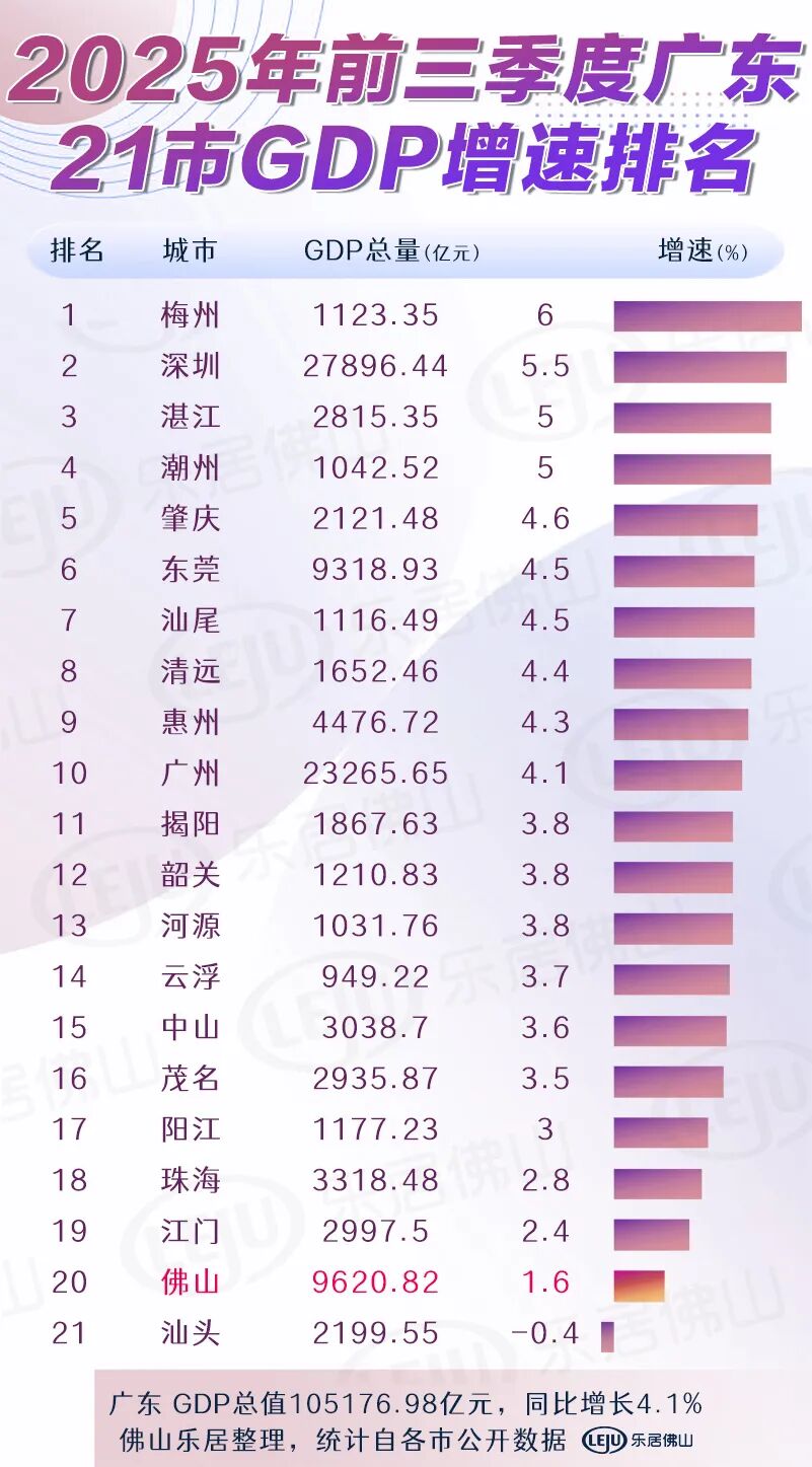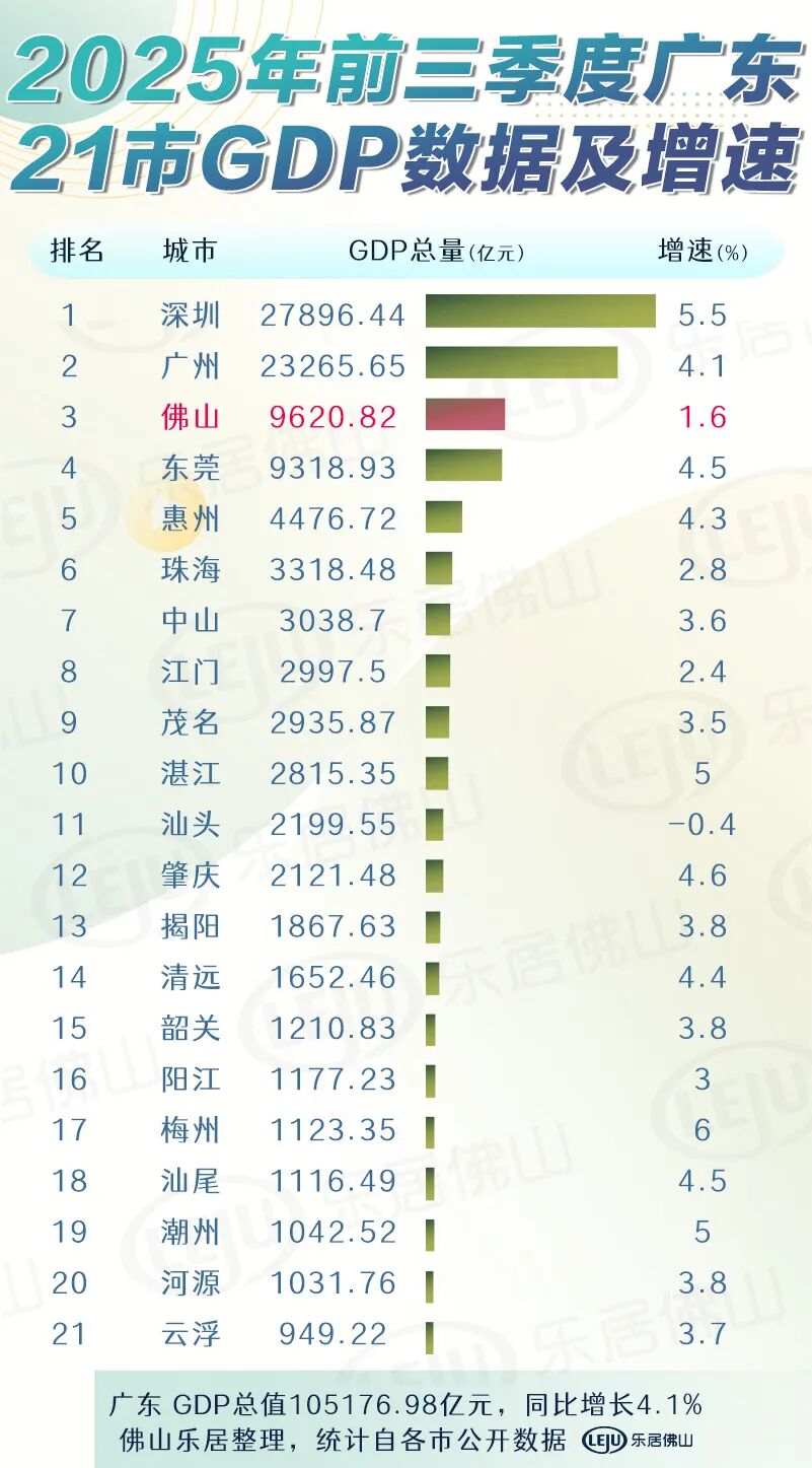 佛山第三!广东21市前三季度GDP出炉!增速排位又变了